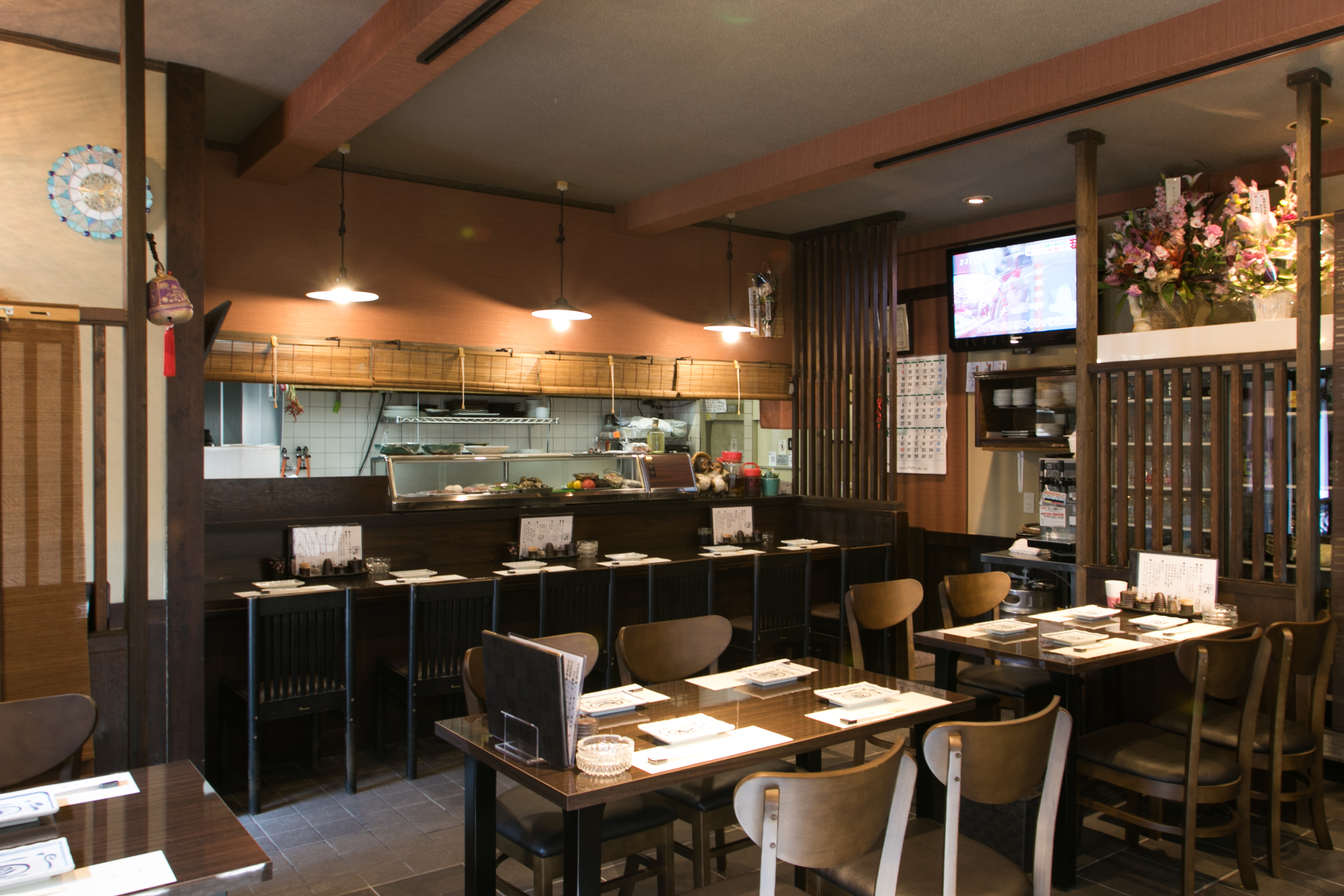 味処膳き屋の店内が360度見渡せます。カウンター、テーブル席、お座敷がございますので、お1人様から団体様まで、お気軽にお越しくださいませ。
